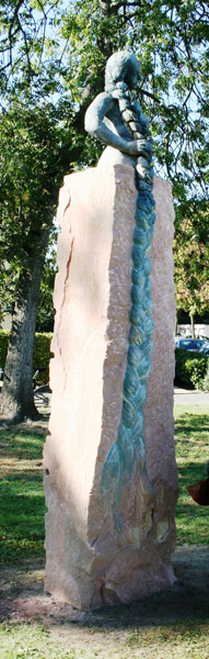Rapunzel – Hemsbach, Hebelschule – 2011 – Höhe ca. 380 cm – roter Sandstein, Terrakotta mit Blattgold